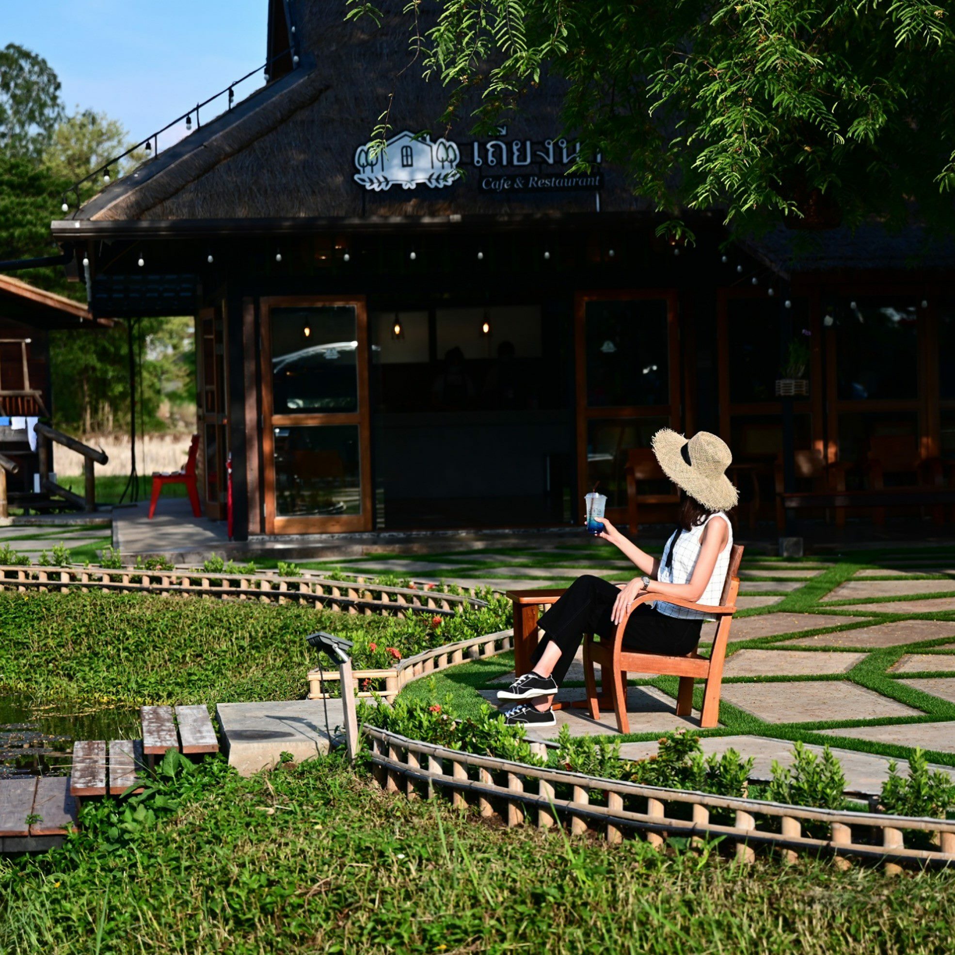 อยากให้ร้านเป็นเหมือน “เถียงนา” ของคนอีสานสมัยก่อน เป็นที่พักของชาวนา เวลาที่จะดำนาครั้งหนึ่งต้องออกเดินทางไปไกลท่ามกลางอากาศร้อนๆ ก็จะมีกระต๊อบเอาไว้พักเหนื่อย คลายร้อน ทานข้าวเที่ยง นอนพักเอาแรง ซึ่งทั้งหมดนี้คือได้ทั้งบรรยากาศและกลายมาเป็นแนวคิดหลักของร้าน คือ “เหนื่อยจากอะไรมาก็ตาม ต้องการพักผ่อน ที่นี่พร้อมต้อนรับ” โดยร้านเปิดทุกวันตั้งแต่เวลา 09.30 – 21.30 น.