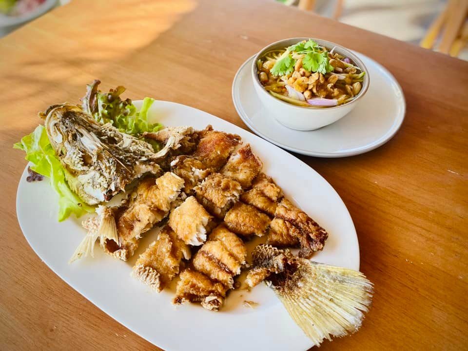 เติมท้องกับเมนูอาหารที่เริ่มตั้งแต่อาหารจานด่วน จานเดียว อย่าง สุกี้ ข้าวผัด หรือกระเพราไข่ดาวต่างๆ ก็มี หรือจะจัดเต็มไปกับเมนูแซ่บๆ สั่งมาแชร์ ไม่ว่าจะเป็น ปลากระพงทอดน้ำปลา ปลากระพงนึ่งมะนาว กุ้งทอดซอสมะขาม ต้มยำไก่บ้าน และไก่บ้านทอดสมุนไพร