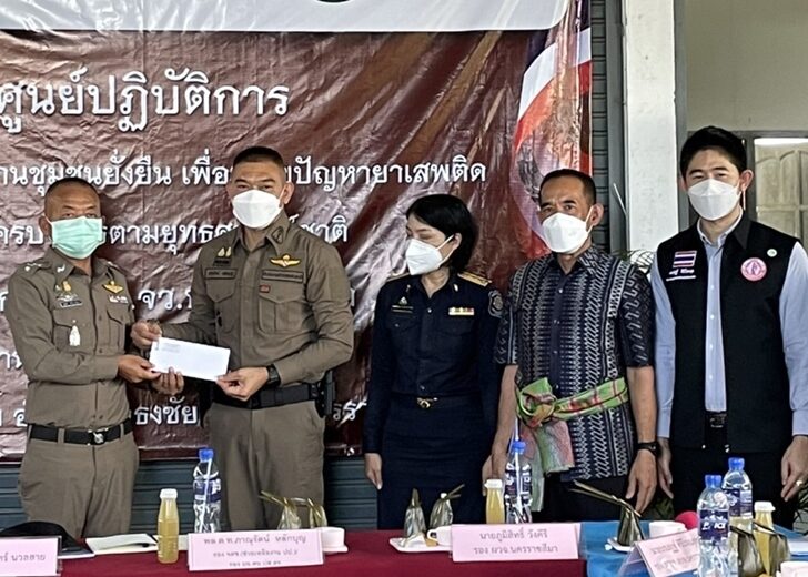 และพัฒนาการเพื่อการประกอบอาชีพ (ผ่ายางรถยนต์ทำกระถางต้นไม้) โดยผลการปฏิบัติ จำนวน 36 ครัวเรือน ประชากร 177 คน เป้าหมายที่ต้องการเอกซเรย์ 117 คน ประชากรที่ตรวจปัสสาวะแล้ว 117 คน พบสารเสพติด 1 คน สมัครใจเข้าบำบัด 6 คน เข้าร่วมโครงการฯ 7 คน ทั้งนี้มอบเงิน 10,000 บาท ให้กับ ผกก.สภ.ปักธงชัย เพื่อนำไปใช้ในการดำเนินงานโครงการฯ ต่อไป