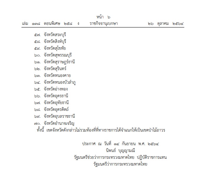 ประกาศ ณ วันที่ 14 กันยายน พ.ศ.2564 ลงชื่อ นิพนธ์ บุญญามณี รัฐมนตรีช่วยว่าการกระทรวงมหาดไทย ปฏิบัติราชการแทนรัฐมนตรีว่าการกระทรวงมหาดไทย