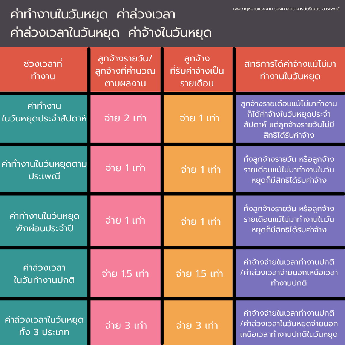 กฎหมายแรงงาน “วันหยุดได้เงิน” มั้ย สรุปมาให้แล้ว ค่าจ้าง ค่าล่วงเวลา ค่าล่วงเวลาในวันหยุด ค่าทำงานในวันหยุด และ ค่าจ้างในวันหยุด