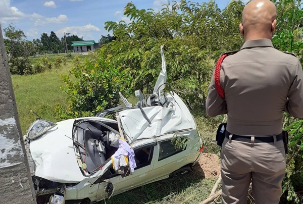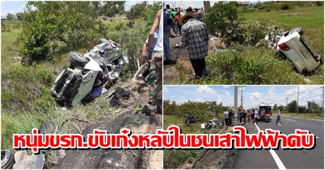 สลด! หนุ่มขรก.วธ. ขับเก๋งหลับในเสียหลักพุ่งชนเสาไฟฟ้าดับคาที่