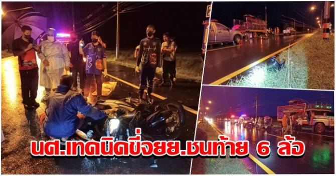 สลด! หนุ่มนศ.เทคนิค ขี่จยย.ฝ่าสายฝน พุ่งชนท้ายรถบรรทุก 6 ล้อดับคาที่