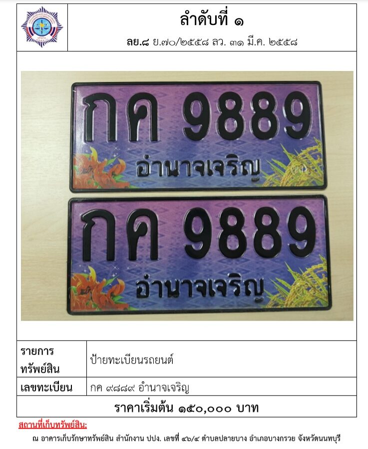 10.ป้ายทะเบียนรถยนต์ กค 9889 อำนาจเจริญ ราคาเริ่มต้น 150,000 บาท