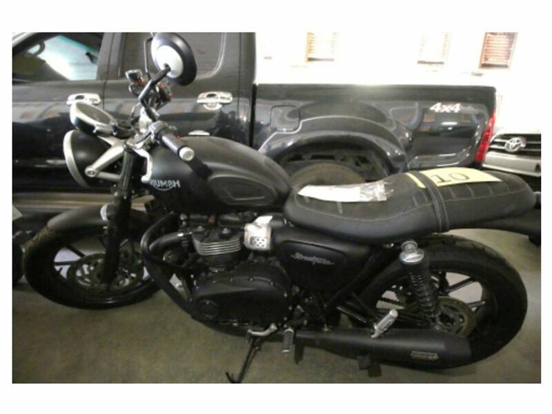 9.รถจักรยานยนต์ ยี่ห้อ Triump steet twin สีดำ จำนวน 1 คัน ราคาเริ่มต้น 150,000 บาท