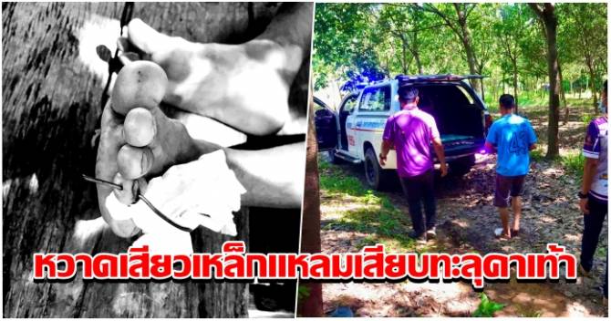หวาดเสียว! หนุ่มใหญ่ใช้เครื่องตัดหญ้า เหล็กแหลมกระเด็นเสียบทะลุคาเท้า