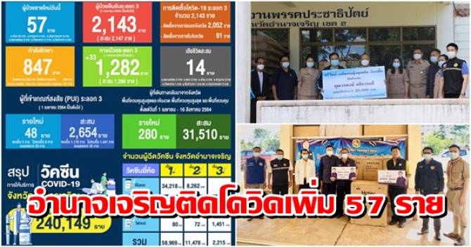 อำนาจเจริญติดโควิดเพิ่ม 57 ราย-ผู้ใจบุญมอบอุปกรณ์การแพทย์