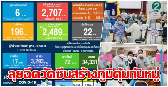 อำนาจเจริญติดโควิด 6 ราย เดินหน้าฉีดวัคซีน เข็ม1 ร้อยละ 40.67 แล้ว