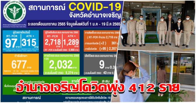 อำนาจเจริญโควิดพุ่งกะฉูด 412 ราย สะสม 2,847 ราย