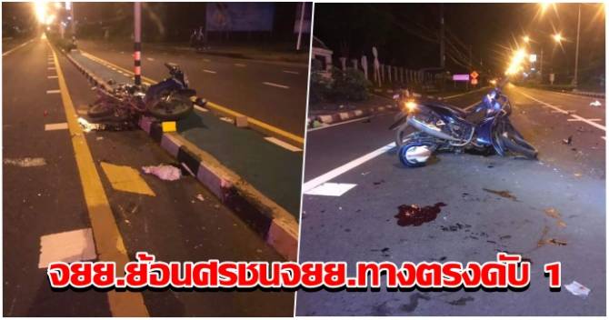 อุทาหรณ์หนุ่มวัย 30 ปี ควบจยย.ย้อนศร ชนจยย.ทางตรง ดับ 1 เจ็บ 2