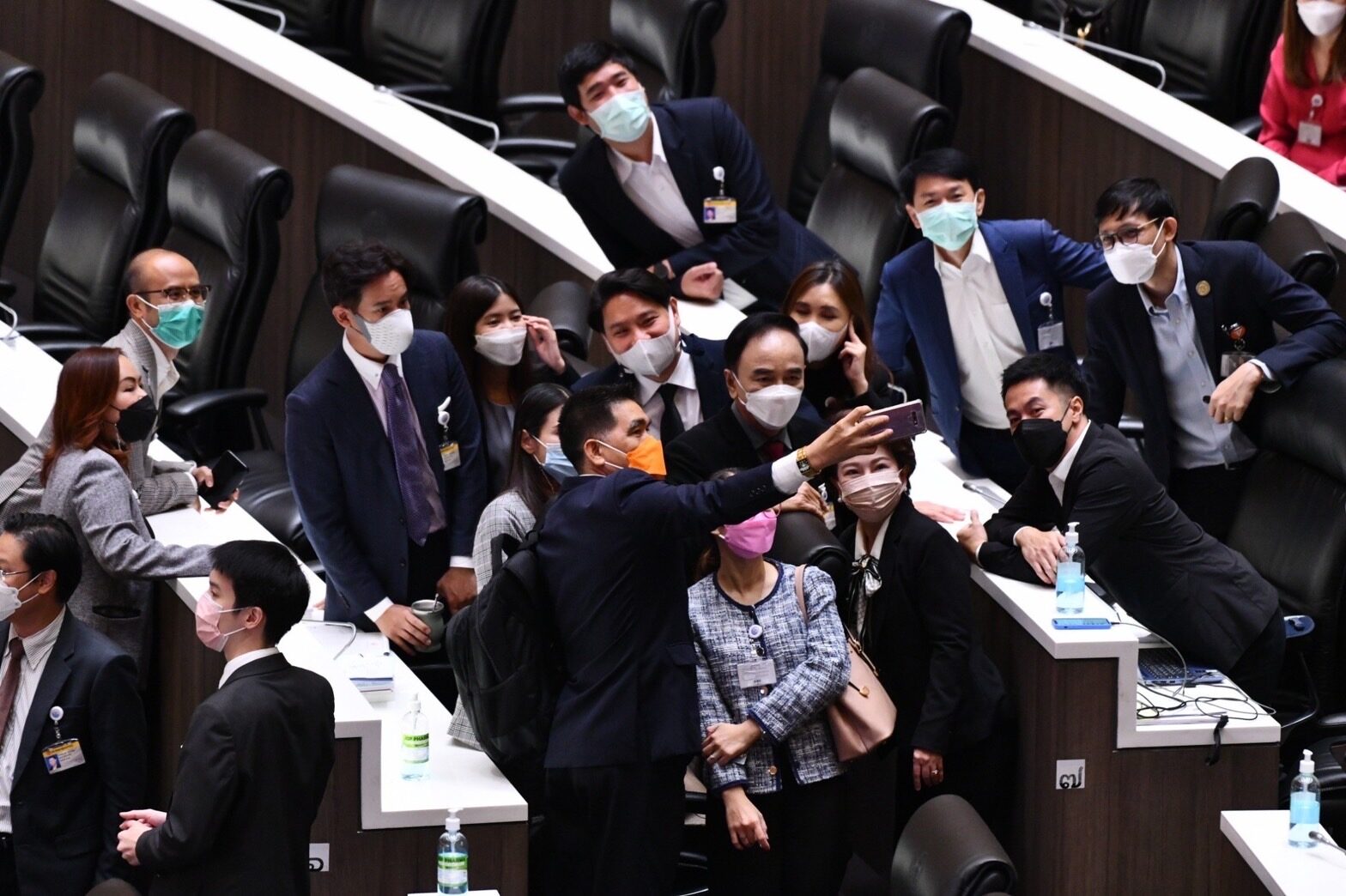 พรรคก้าวไกล แสดงตน 5 คน คือ นายคารม พลพรกลาง ส.ส.บัญชีรายชื่อ นายเอกภพ เพียรพิเศษ ส.ส.เชียงราย นายพีรเดช คำสมุทร ส.ส.เชียงราย ที่เตรียมย้ายไปพรรคภูมิใจไทย นายเกษมสันต์ มีทิพย์ ส.ส.บัญชีรายชื่อ และ นายเท่าพิภพ ลิ้มจิตรกร ส.ส.กทม.