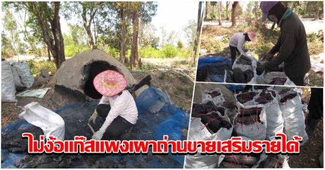 ไม่ง้อแก๊สแพง ชาวนาอำนาจเจริญ เผาถ่านทำอาหาร ที่เหลือขายเสริมรายได้