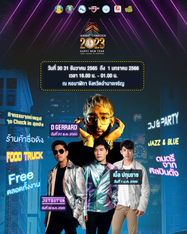 ติดตามรายละเอียดได้ที่ Facebook : https://www.facebook.com/Amnat-Charoen-2023-Happy-New-Year-Times-Square-Of-Happiness-105444229082996/